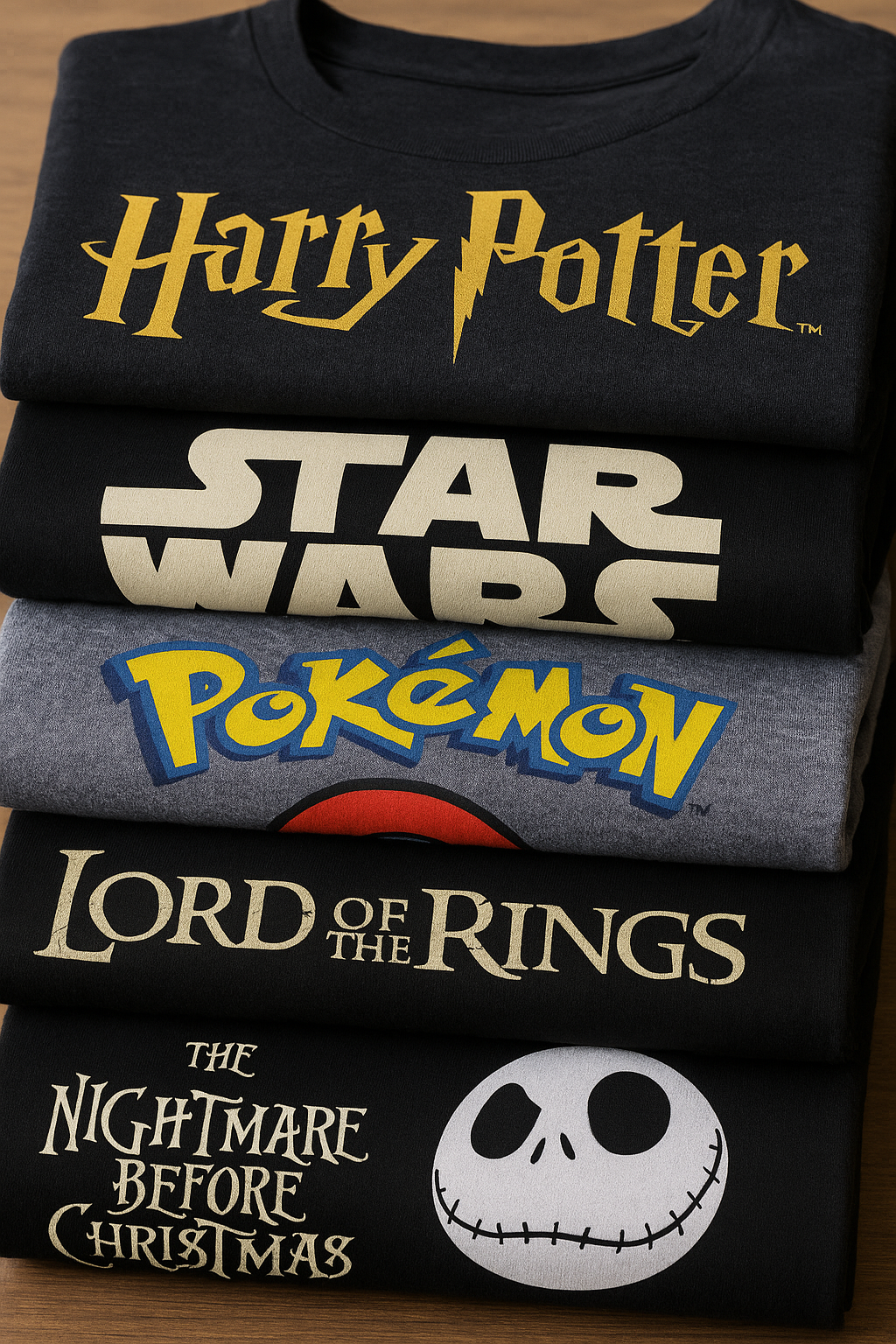 Our t-shirts combine premium quality with official licensed designs from the franchises you love. Printed on soft, durable fabric with a fit made for everyday wear, each tee lets you rep your favourite fandom in comfort and style. From Harry Potter and Star Wars to Pokémon, Lord of the Rings, and The Nightmare Before Christmas, every design is 100% authentic — no knock-offs, just the real deal. Build your collection with merch that lasts.