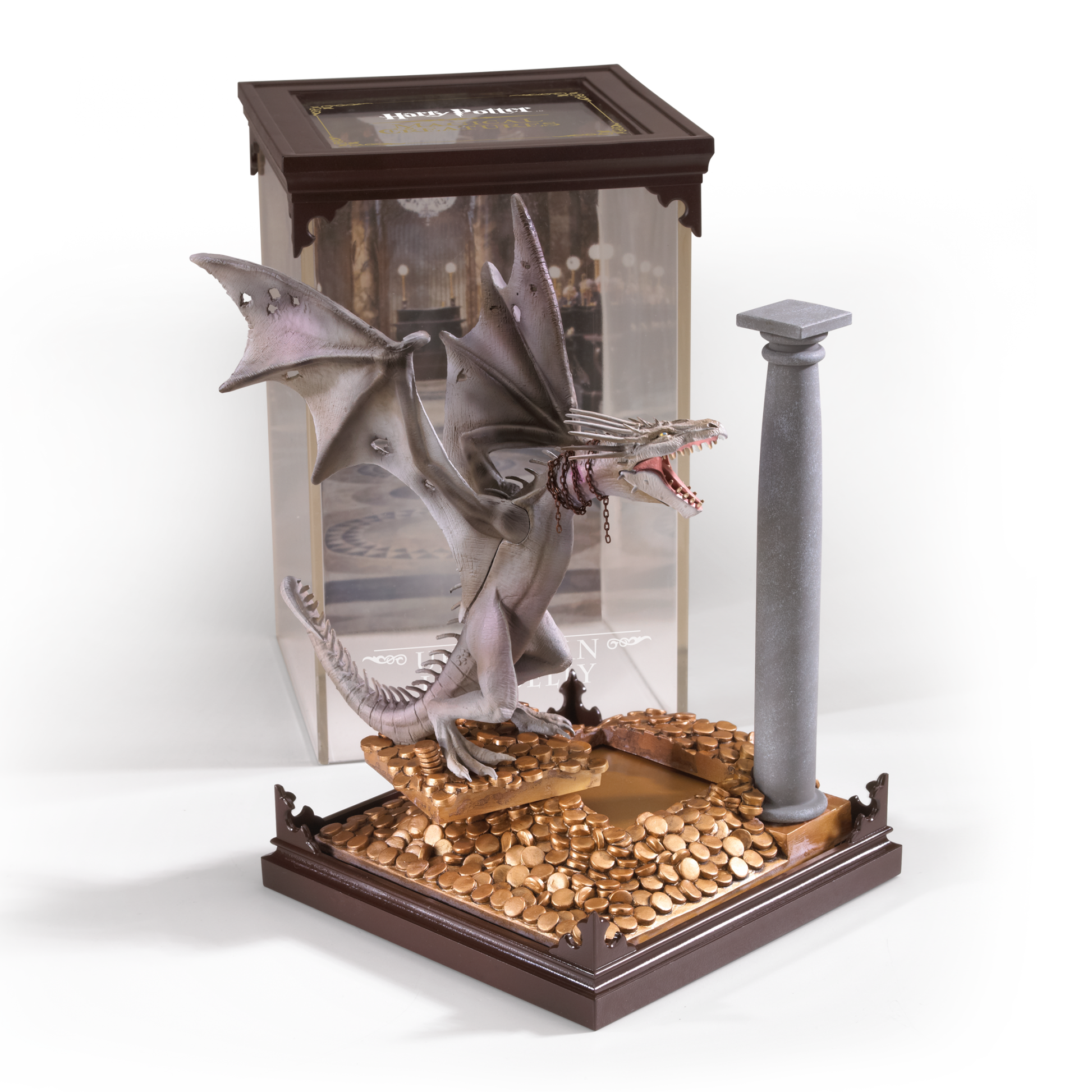 A hand-painted diorama of a Ukrainian Ironbelly, the largest breed of dragon, with an immense wingspan and talons as strong as steel. This dragon guarded the gold in the Gringotts vaults in the Harry Potter series.