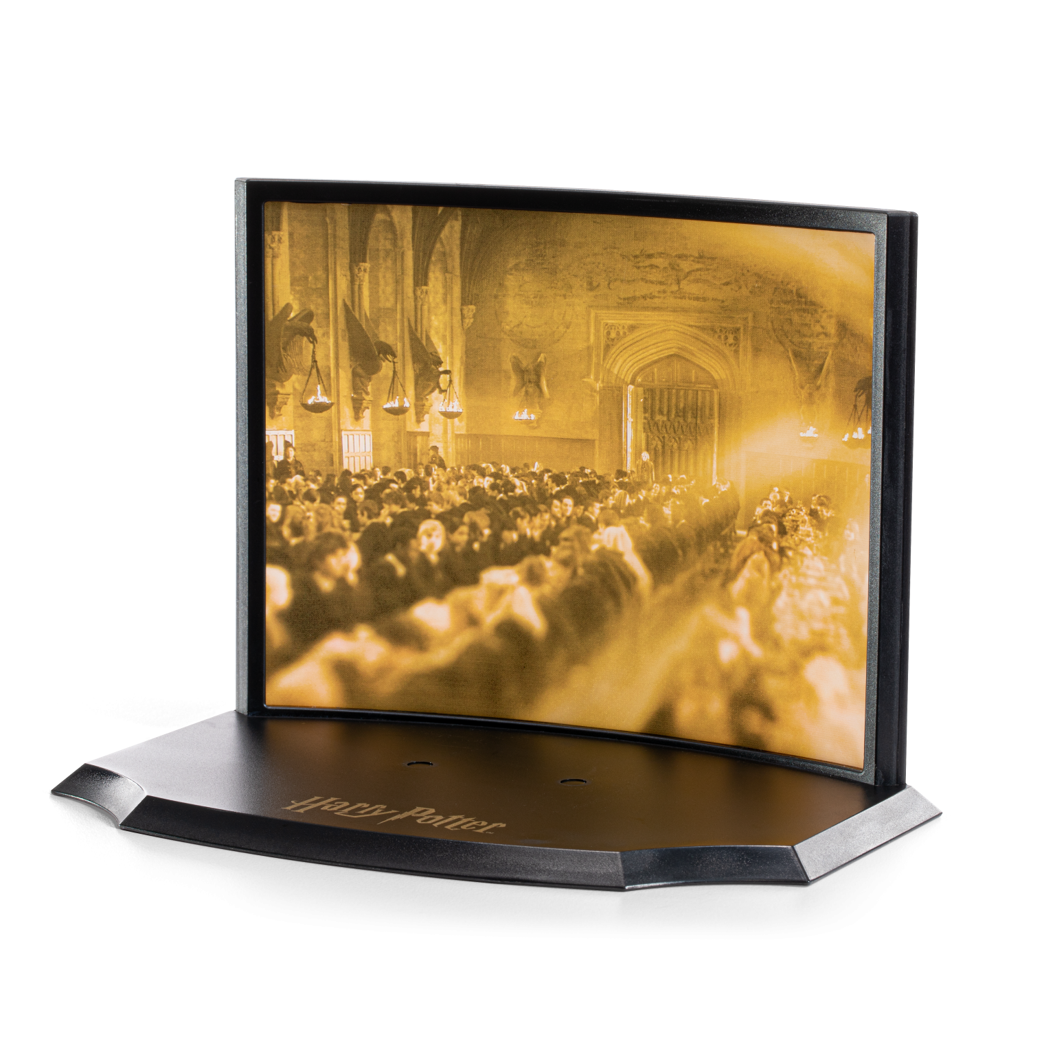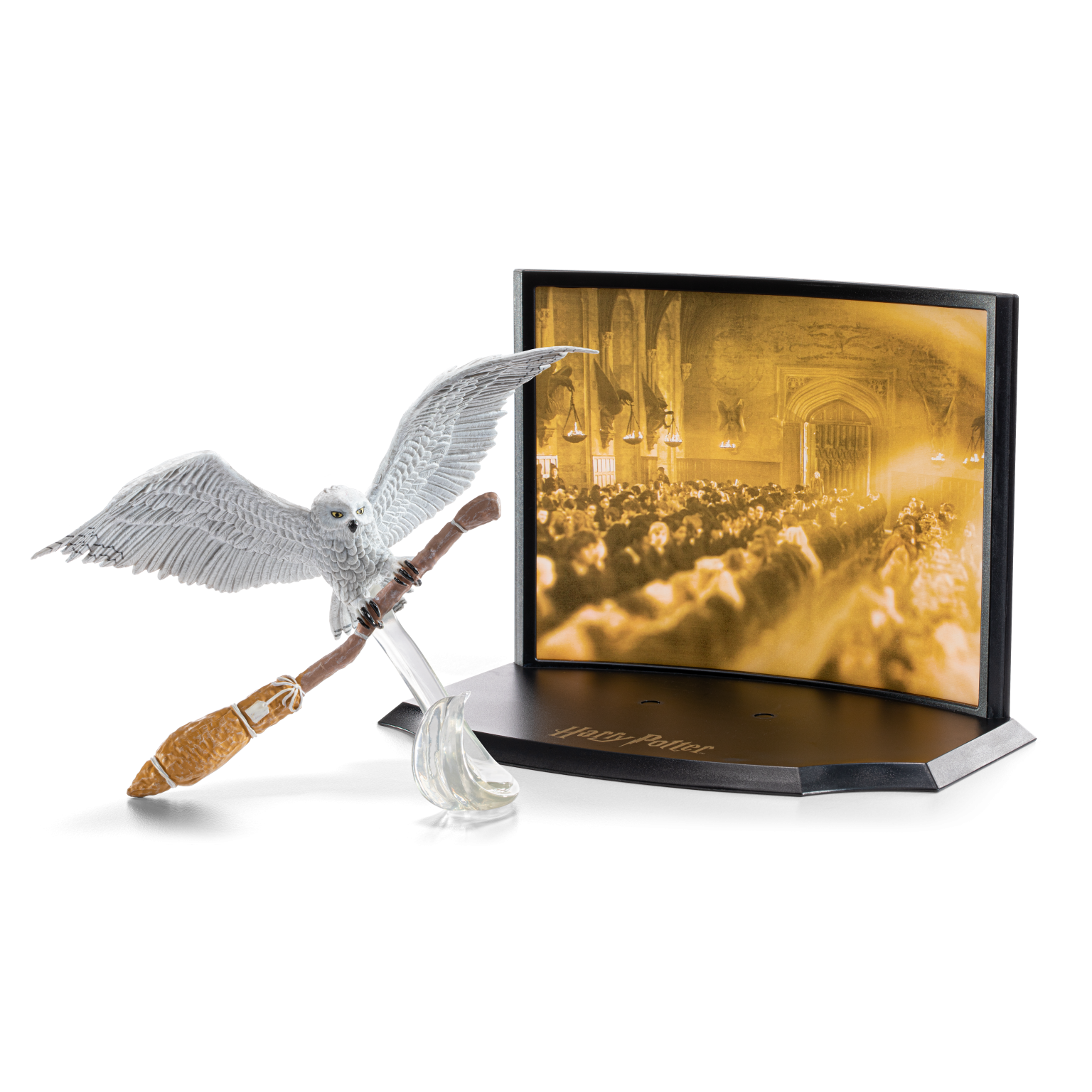 This diorama features Hedwig delivering the Nimbus 2000 against the backdrop of Hogwarts’ Great Hall, just like in Harry Potter and the Philosopher’s Stone (2001).